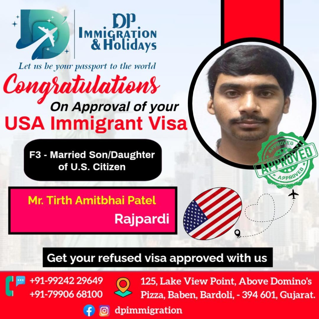 Successfully processed Immigrant Visa for Tirth Patel. The application was handled with precision, ensuring all documentation met the strict US immigration standards.