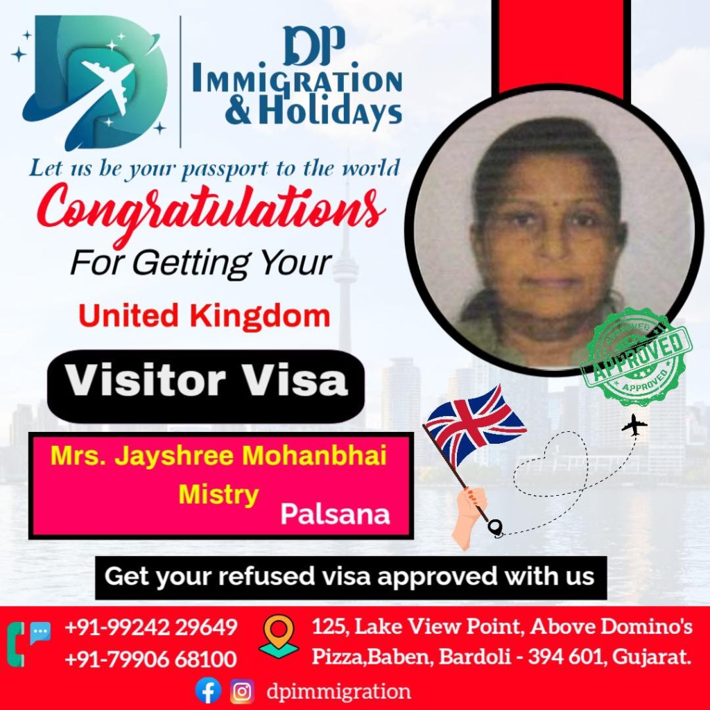 Congratulations to Jayshree Mistry on receiving her UK Visitor Visa. We helped streamline the process for a smooth approval.